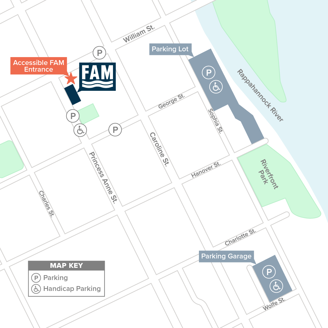 FAM has an accessible entrance located on the William Street entrance under the awning. Please press the button to open the door.